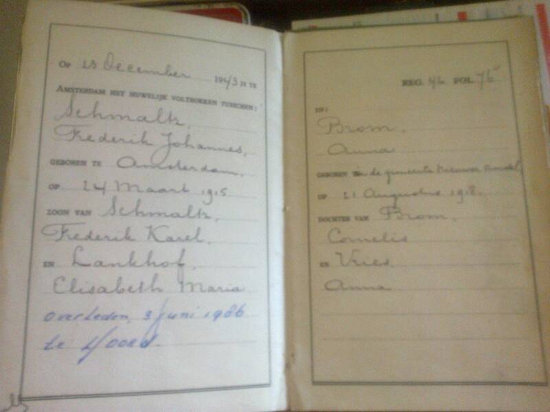 trouw akte Anna Brom en Frederik Schmaltz. 23.12.1943