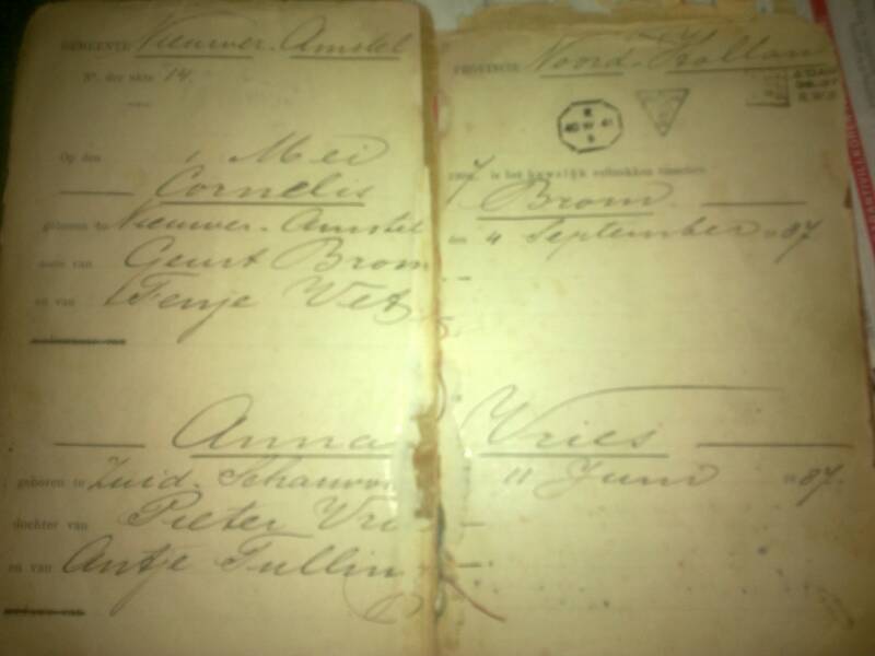 Trouwboekje Cornelis Brom en Anna Vries.....bij schrijvingen van alle kinderen.