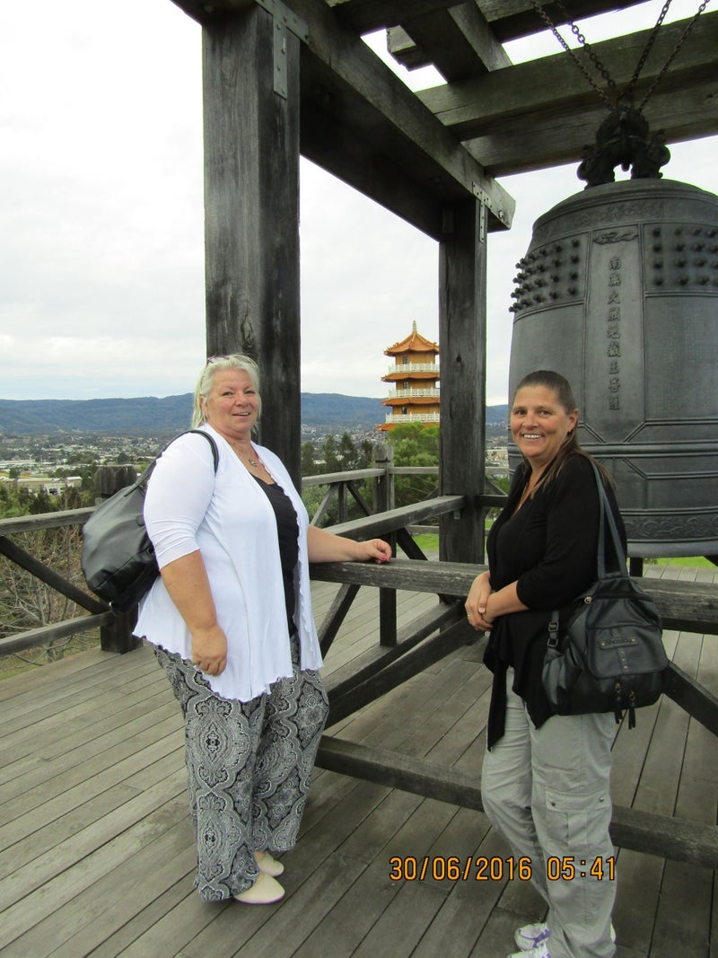 We visited a beautiful temple and rang the gratitude bell. Me together with Bree