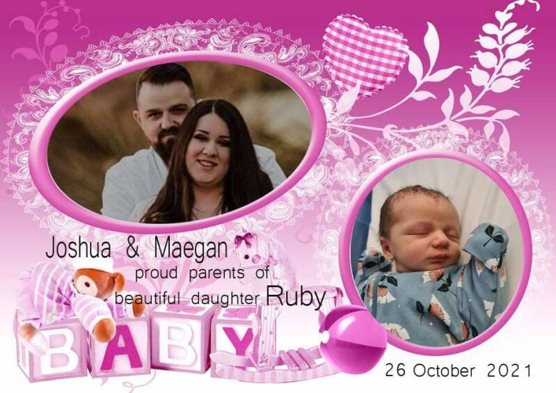 Our family is growing, Joshua Brom and Maegan Louise are the proud parents of a beautiful little girl Ruby. Congratulations Joshua and Maegan we wish you love, joy and happiness with your precious little daughter.