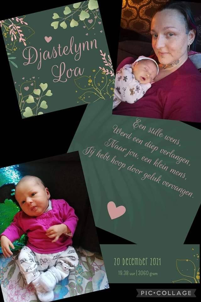Hier ben je dan, zolang gehoopt, gewenst en geprobeerd op alle mogelijke manieren. En nu mocht ik je eindelijk als SMBC op 20 December verwelkomen in deze wereld. Wat ben je mooi, lief, grappig, bijzonder, zachtaardig, pittig en betoverend! Wij gaan een geweldige tijd tegemoet met zijn 2en, dat weet ik zeker.. Dankjewel dat je mij gekozen hebt lieve Djastelynn, mijn leven heeft nog nooit zo kloppend gevoelt. ![]()
