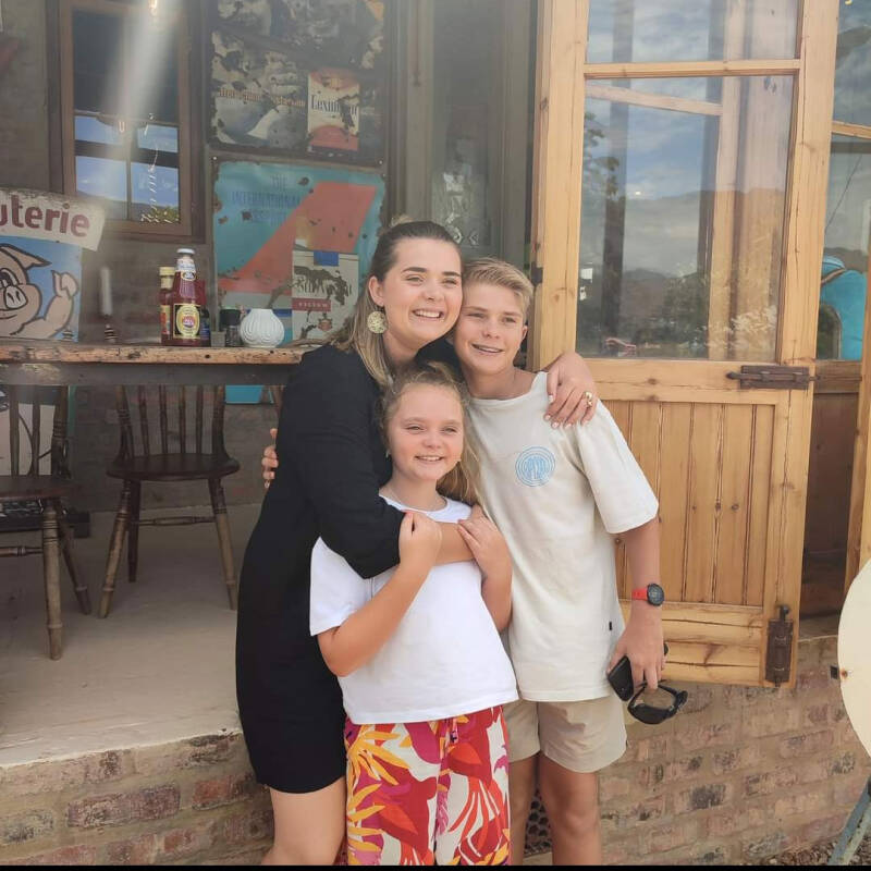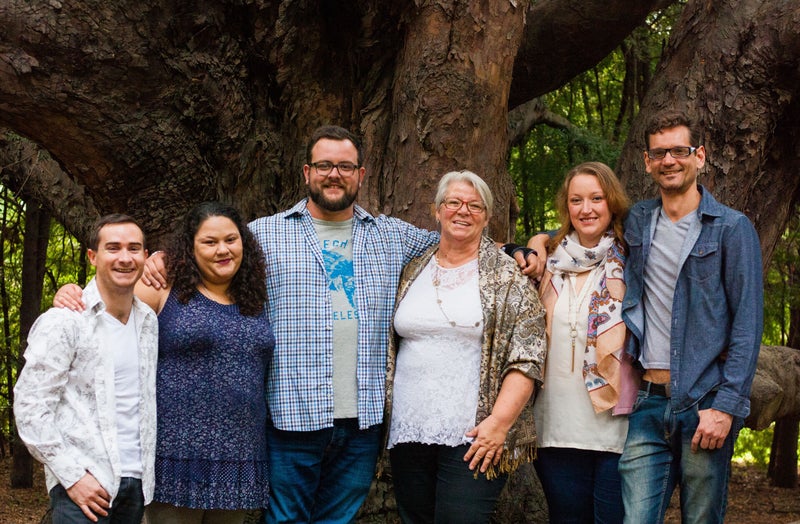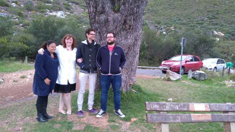 MJ, Roxanna, Chris en Bryan bij de plaats waar mijn moeder is uitgestrooid. Kaapstad Tafelberg.