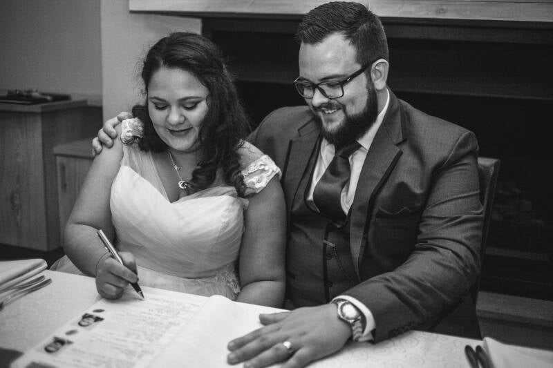 Bryan en zijn vrouw MJ op hun trouwdag